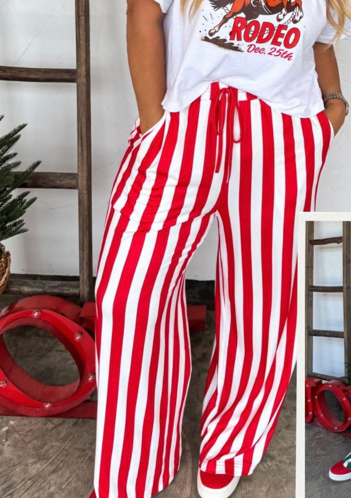 Vertical Stripes Pants - Red